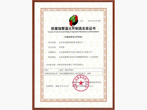 山東東興揚(yáng)(淄博五環(huán))防腐設(shè)備有限公司是專業(yè)的鋼襯玻璃廠家,鋼襯玻璃,鋼襯玻璃管道等產(chǎn)品使用壽命長(zhǎng),造價(jià)低,集開發(fā)、設(shè)計(jì)、生產(chǎn)、經(jīng)營(yíng)于一體的專業(yè)性的工業(yè)防腐單位,被評(píng)選為中國(guó) 工業(yè)防腐蝕技術(shù)協(xié)會(huì)會(huì)員企業(yè)單位。